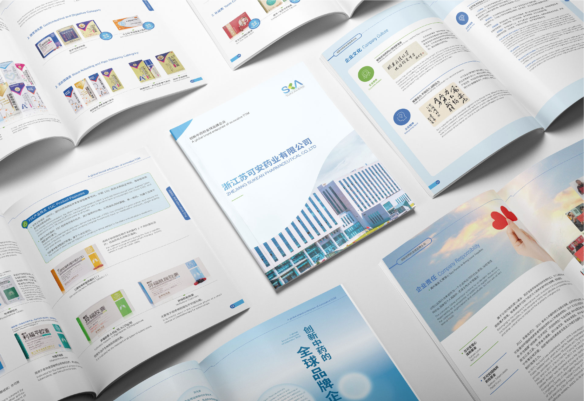 象征卓越的工藝材質選擇: 為體現蘇可安藥業(yè)對品質的極致追求,畫冊選用高端特種紙,并通過覆亞膜、觸感膜、UV、燙印等精致工藝,在細節(jié)處提升畫冊的質感與手感。這種卓越的物理體驗,無聲地強化了客戶對品牌“高品質”的認知。