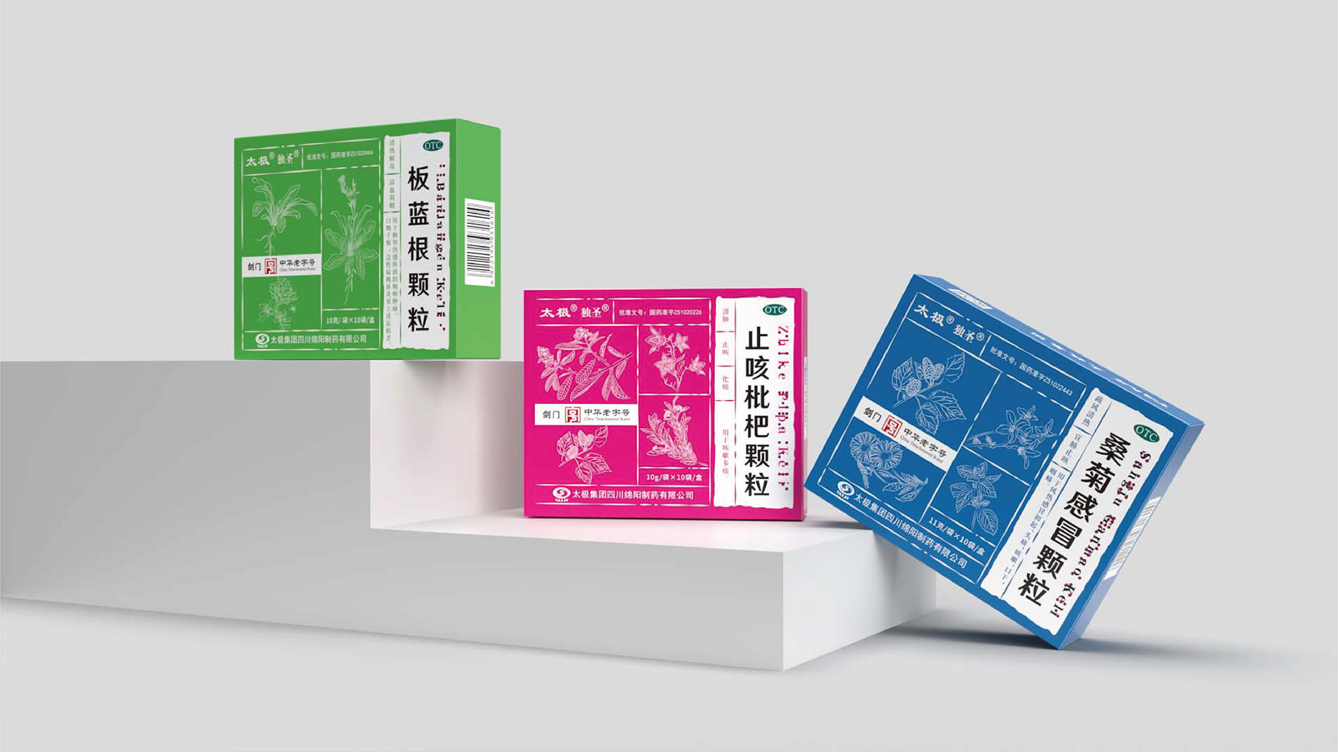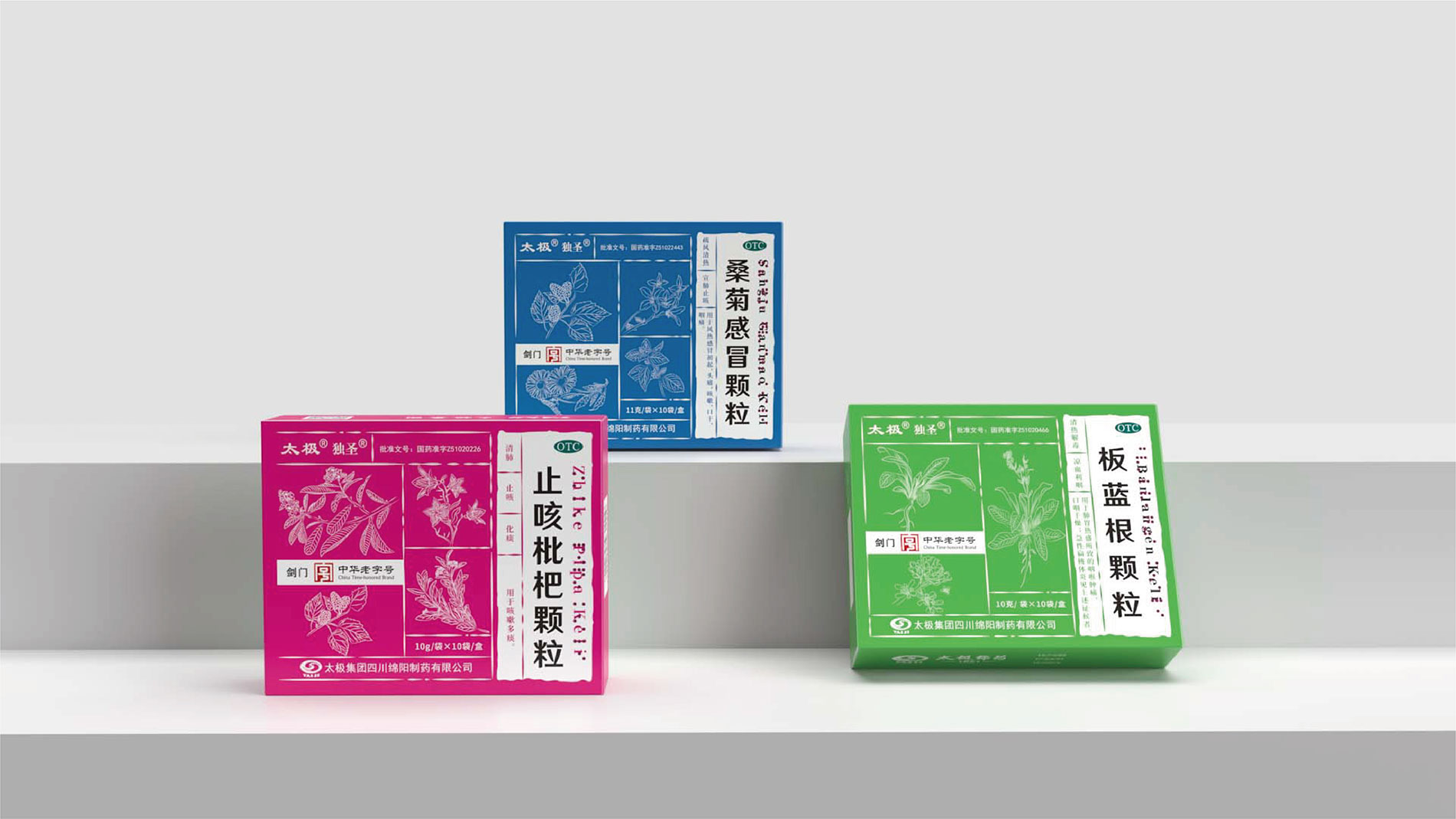 • 系列化規劃: 打破原有產品“各自為戰”的視覺混亂,建立統一的品牌視覺基因。通過色彩體系、符號元素、版式規范的標準化,將顆粒系列、丸劑系列等不同劑型的產品進行家族化整合,強化“太極綿陽制藥”的整體品牌印象,提升終端陳列的視覺沖擊力。